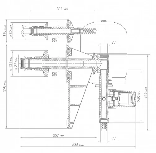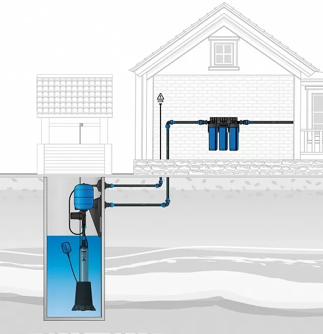 - Имеются дополнительные выходы для организации отдельной магистрали на полив или другие нужды прямо из колодца;