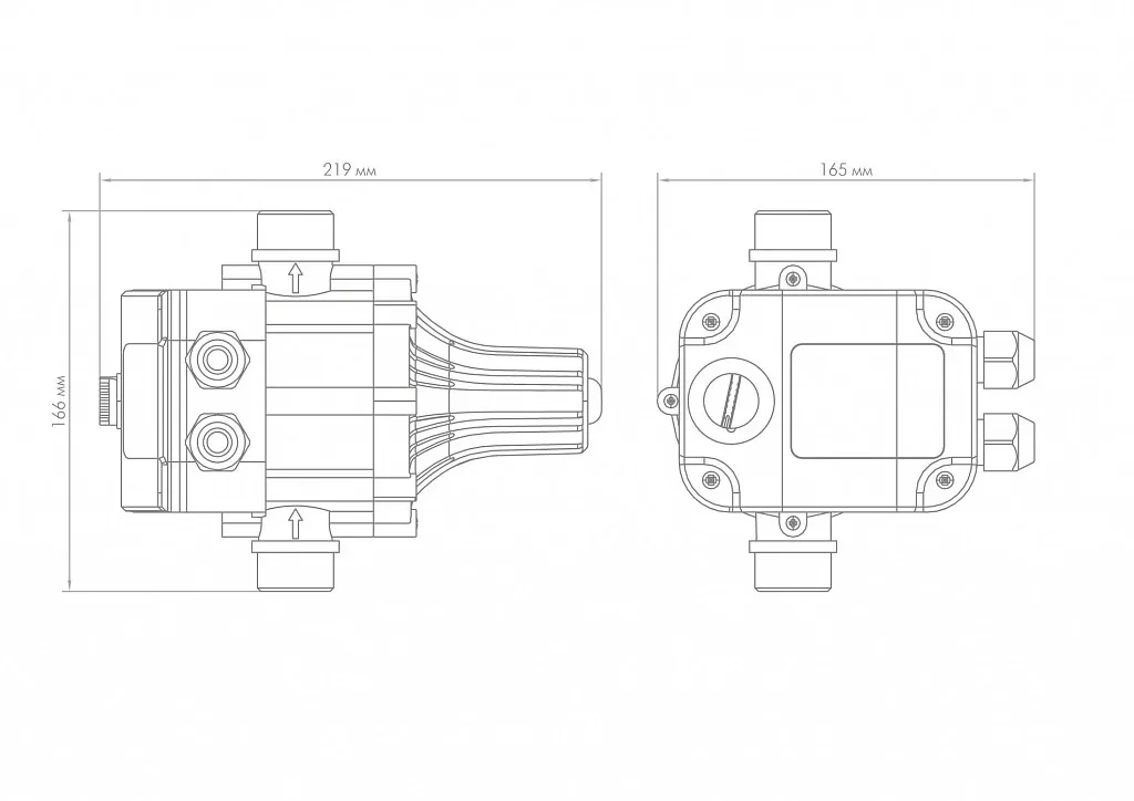 - Установка блока автоматики должна соответствовать направлению движения воды, указанному на корпусе.