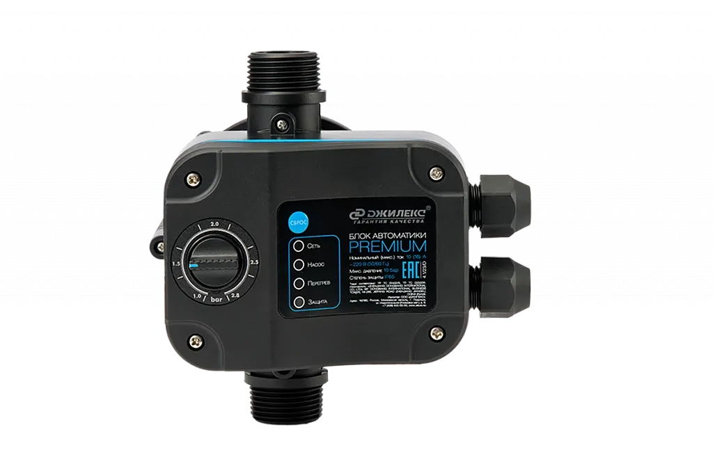 Кроме того, блок автоматики PREMIUM оснащен встроенным обратным клапаном, который предотвращает обратный поток воды, обеспечивая безопасность и эффективность работы системы.