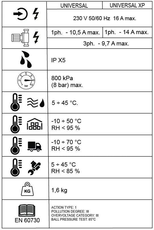 • Защита от протечек, избыточного давления, перегрева, блокировки ротора и аномального электропитания.