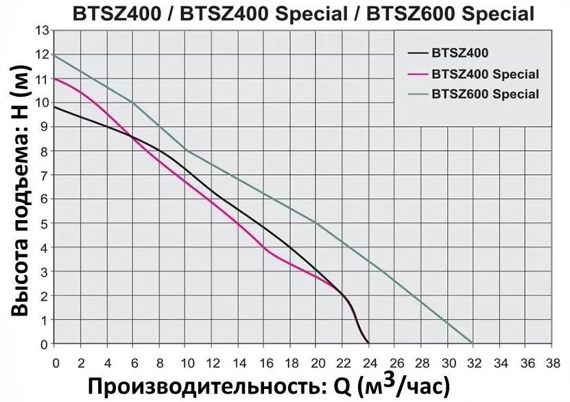Графические характеристики дренажного насоса ELPUMPS BTSZ 400