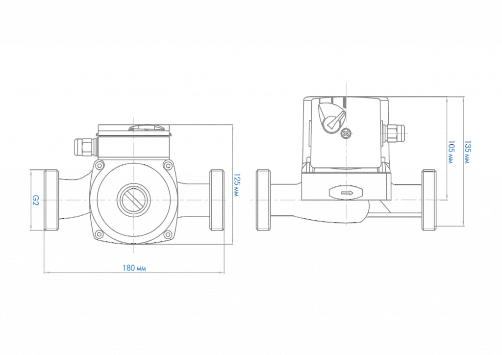 - Установочный размер между присоединительными фланцами: Указанный размер составляет 180 мм, что является важной информацией при установке и подключении оборудования
