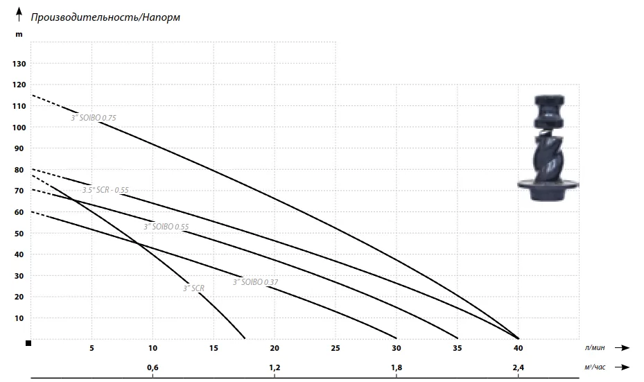 Скважинный винтовой насос SQIBO представляет собой надежное решение для водоснабжения, обеспечивающее эффективную работу при высоких показателях мощности и производительности. С мощностью 750 Вт и максимальным напором до 115 метров он способен эффективно обеспечить подачу воды на значительные глубины. Максимальный расход воды составляет 2.4 кубических метра в час, что делает этот насос идеальным для домашних и коммерческих потребностей.