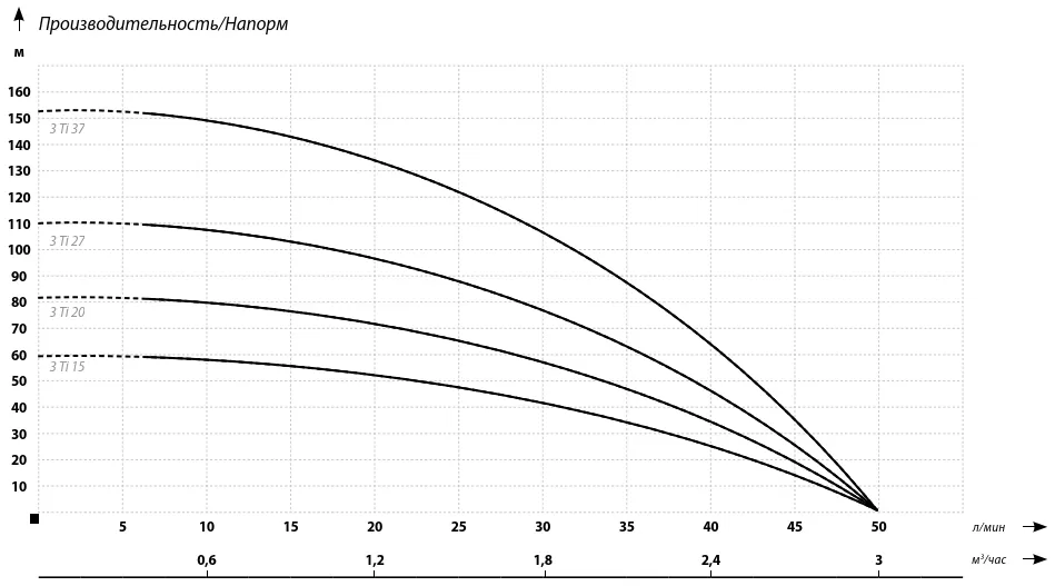 Графические характеристики насоса для скважины IBO 3Ti 37