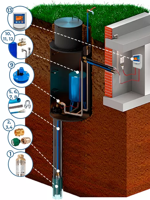 Обеспечение крупных ферм водой из глубоких водозаборов, орошение садов и огородов, питомников деревьев и кустарников, осушение территорий, сантехника, промышленность.Установка скважинного насоса IBO 6SD 60/7 (380 В)