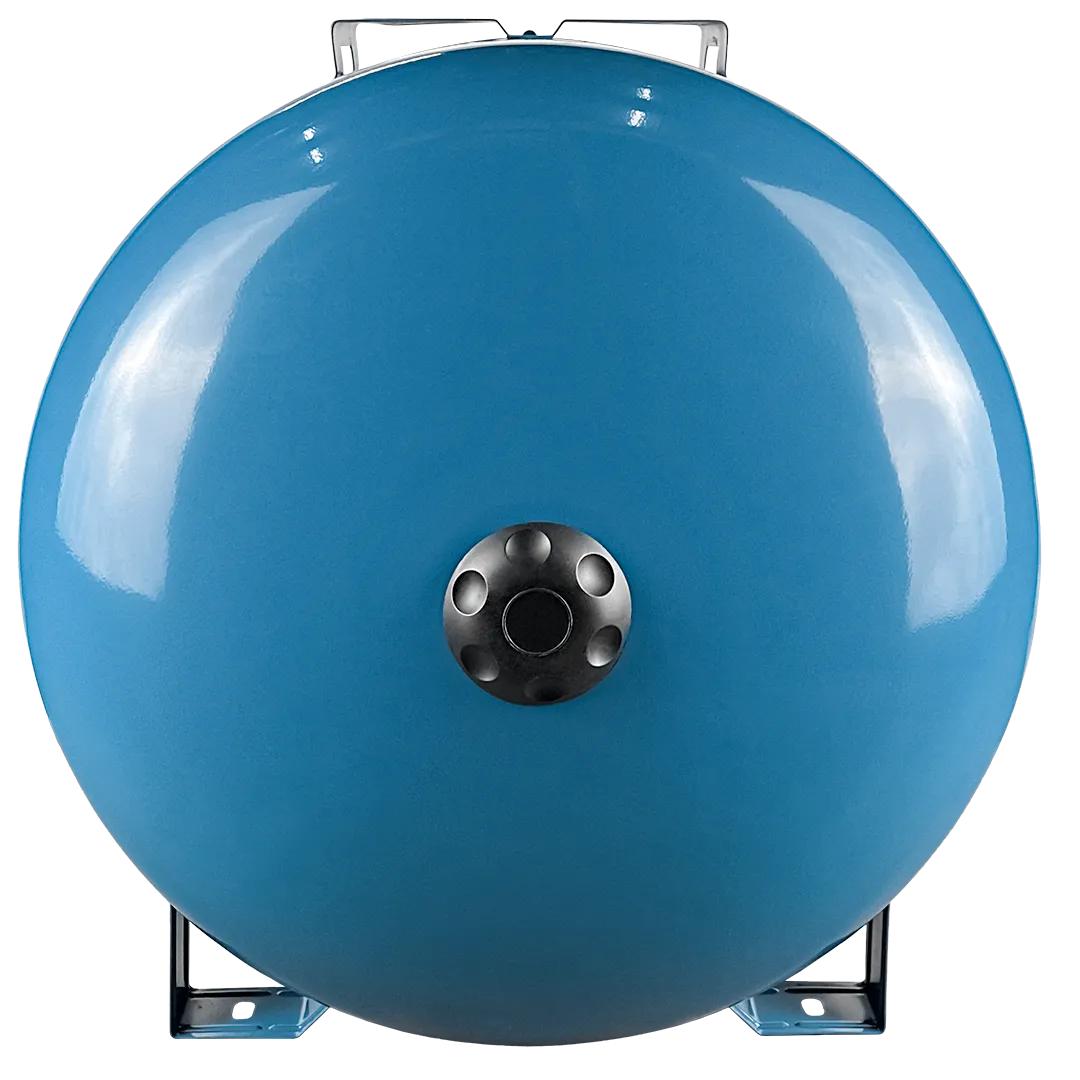 Горизонтальный мембранный бак для воды IBO объемом 100 литров. Бак выполнен из стали и покрыт специальным антикоррозионным составом. Мембрана бака выполнена из пищевой резины на основе бутилкаучука. Бак снабжен приварной площадкой для установки поверхностного насоса. В нижней части бака установлены металлические кронштейны с целью крепления бака к поверхности.