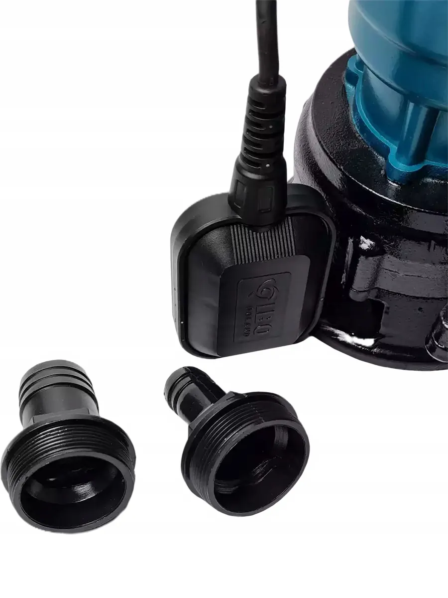 Насос оснащен рукояткой, которая позволяет переносить и подвешивать его. Это удобно при транспортировке и установке насоса. Рабочее колесо закреплено на конце вала электродвигателя и отвечает за перекачку жидкости. Для предотвращения блокировки рабочего колеса, вал двигателя оснащен вращающимся ножом, который измельчает волокнистые включения в жидкости. Это полезная функция для работы с жидкостями, содержащими волокнистые частицы.