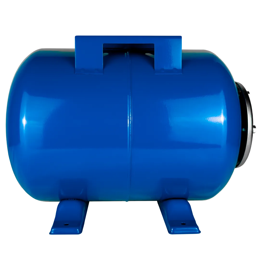Гидроаккумулятор для воды MAXPUMP H-100 горизонтального исполнения предназначен для систем холодного водоснабжения. Гидроаккумулятор служит для накапливания запаса воды объемом до 100 литров, снижения верятности возникновения гидравлических ударов в системе, а также сокращения количества пусков насоса, тем самым продлевая срок службы насоса. Конструкция гидроаккумулятора представляет собой стальной корпус, окрашенный в синий цвет, со сменной мембранной, изготовленной из высококачественного материала EPDM, опорными ножками у основания бака, воздушным клапаном и площадкой для установки насоса. Горизонтальные гидроаккумуляторы, благодаря установочной площадке, расположенной на поверхности бака, могут использоваться с поверхностными насосами.