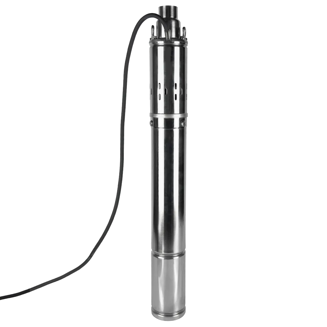 Винтовой скважинный насос MAXPUMP midiVINT насос имеет встроенный в корпусе пусковой конденсатор. Диаметр насоса идеально подходит для скважин 90мм и может использоваться в скважинах до 125мм. Насос отлично подойдет для водоснабжения односемейного дома, максимальный напор насоса составляет 75 м, а производительность 1.5 м³/час. Двигатель насоса обладает мощностью 550 Вт, матерьял обмотки двигателя медь. Корпус насоса выполнен из нержавеющей стали. Насос укомплектован с завода кабелем 20 м. Конструкция насоса проста и легка в обслуживании. Внутри насоса нет привычного вала, на который насажены крыльчатки, разгоняющие питьевую воду для подачи вверх по трубе. Конструкция здесь больше напоминает обычное сверло – шнек, которое при вращении придает жидкости ускорение.