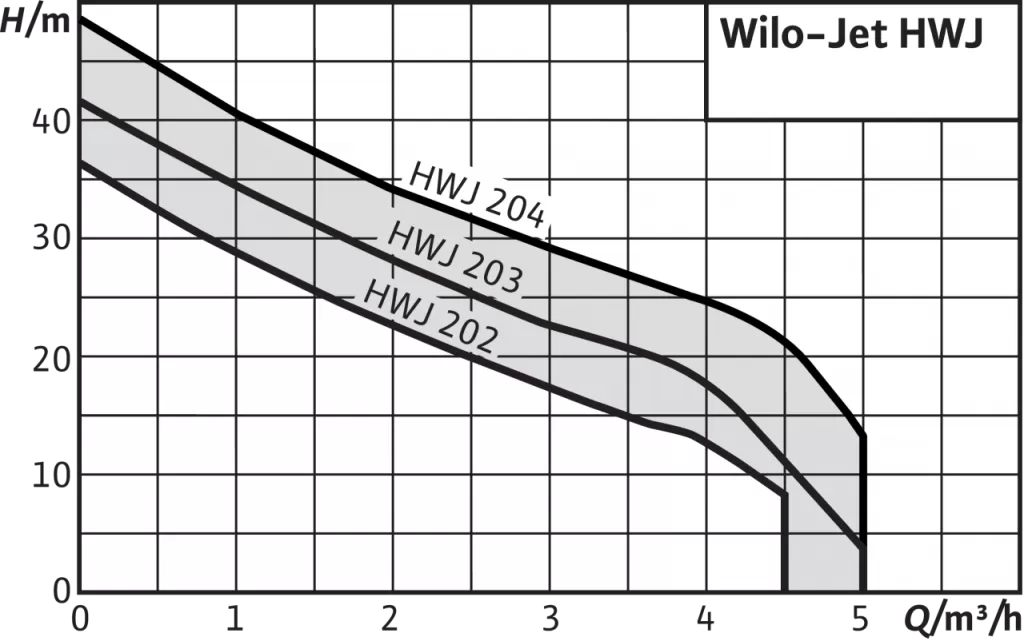 Насосная станция WILO HWJ-203-EM - установка с центробежным насосом в компактном исполнении с горизонтальным всасывающим и вертикальным напорным патрубком, которая состоит из следующих компонентов: Самовсасывающий одноступенчатый струйный насос со сквозным насосным валом электродвигателя и не зависящим от направления вращения скользящим торцовым уплотнением. Напрямую присоединенный фланцами однофазный или трехфазный электродвигатель со встроенным термическим защитным выключателем и конденсатором в исполнении для однофазного тока. Система управления насосом с управляющим агрегатом и мембранным напорным баком, манометрическим выключателем и манометром (0–6 бар). Все детали, находящиеся в контакте с перекачиваемой средой, не подвержены коррозии.