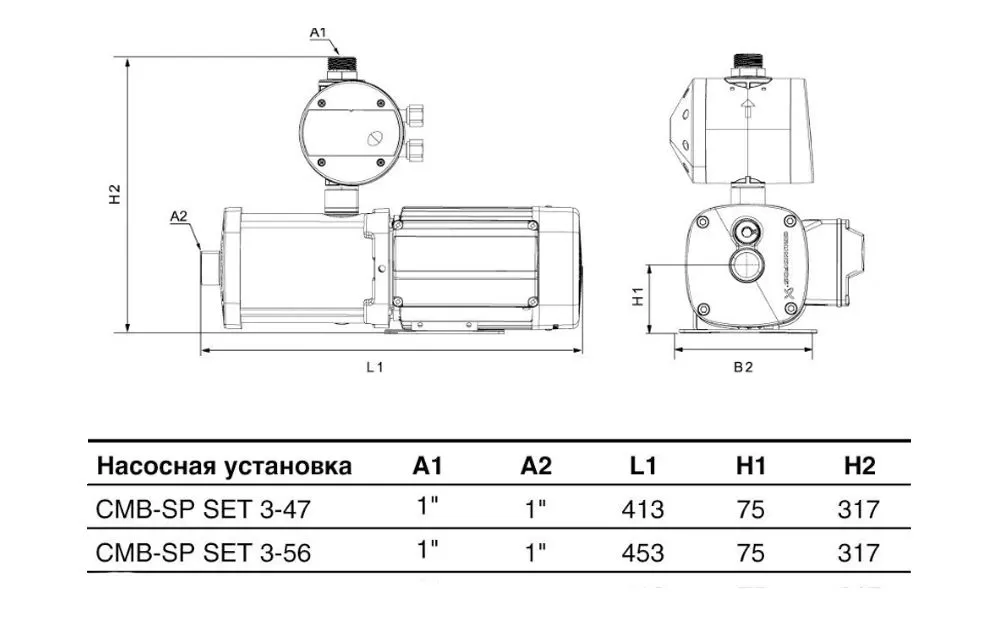 Габариты поверхностного насоса CMB-SP SET 3-47 (PM 2)