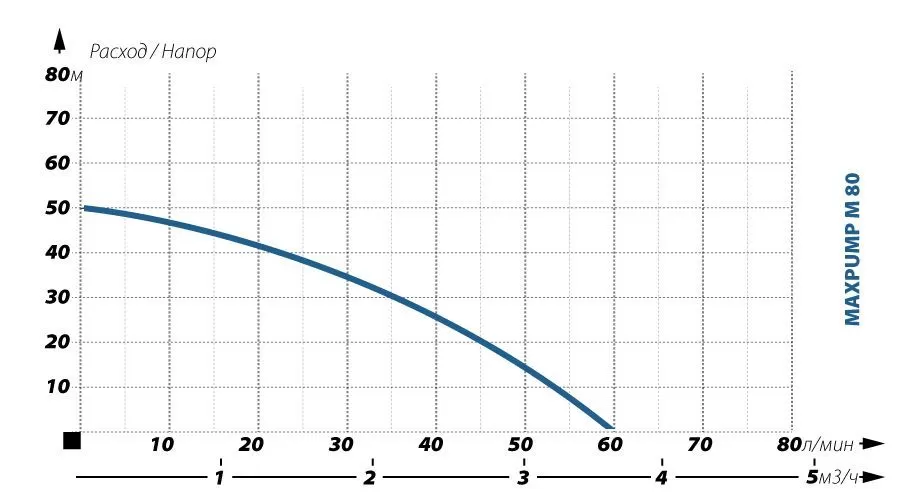 Поверхностный насос MAXPUMP M 80 применяется для водоснабжения индивидуальных жилых домов и мелких производств, полива огорода, наполнения и опорожнения ёмкостей, обеспечения работы стиральных машин-автоматов, электробойлеров типа “ARISTON”, двухконтурных газовых котлов и водонагревательных колонок типа «BOSCH”. Водозабор осуществляется из скважин, колодцев, природных водоемов. Максимальное расстояние от места установки насоса до поверхности воды в скважине или колодце, позволяющее производить самовсасывание, составляет не более 8 м. Общая глубина скважины или колодца при этом не ограничена. На максимальную глубину самовсасывания воды имеет влияние горизонтальное расстояние от колодца или скважины до насоса. Для расчётов также необходимо учитывать, что для всасывающей трубы диаметром 1 ¼” каждому горизонтальному отрезку трубы длиной 10 м соответствует 1 м глубины всасывания. Для всасывающей трубы диаметром 1” следует принять, что 10 м в горизонтальном положении соответствует 1,5 м глубины всасывания.