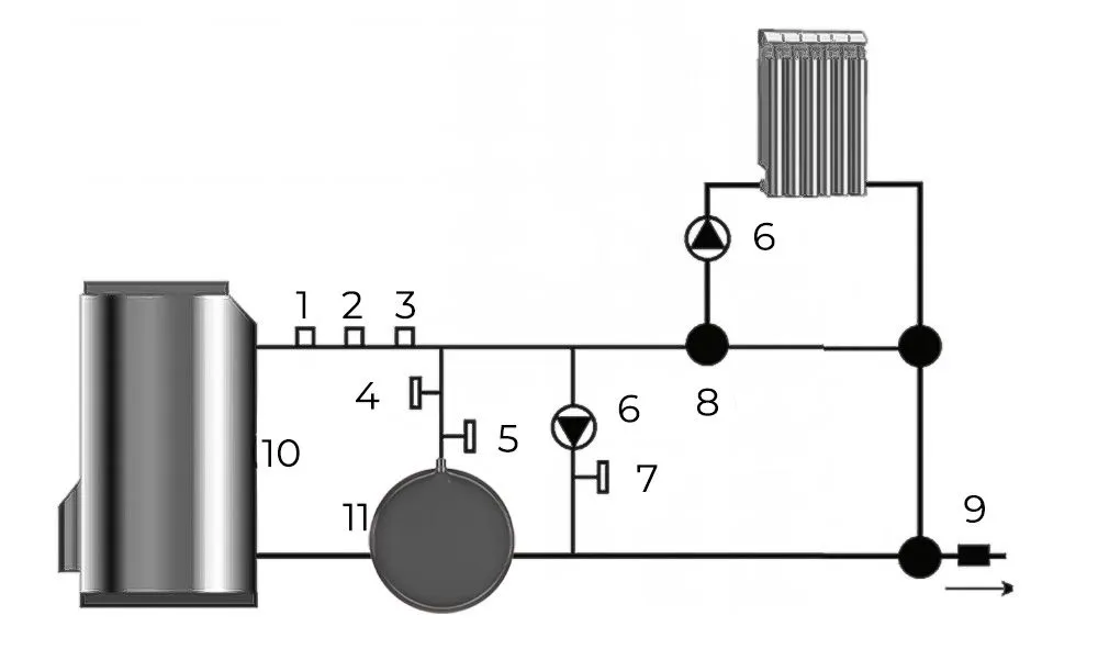 Рекомндуемая схаму установки расширительного бака для отопления ДЖИЛЕКС F 8 л
