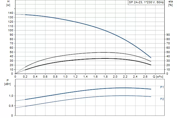 Насос Grundfos SP 2A-23 создан с применением новейших гидравлических технологий. Grundfos SP 2A-23 созданные специально для того, чтобы обеспечивать максимальную эффективность в периоды высокой нагрузки, насос имеет низкую стоимость и высокую надёжность эксплуатации вне зависимости от вида назначения. Grundfos SP 2A-23 обеспечивает высокую эффективность, высокое сопротивление абразивному износу (песку и иным абразивам), защиту от перегрева двигателя и простоту технического обслуживания. Также доступна готовая к применению система контроля и управления, предназначенная для постоянной оптимизации работы насосной системы. Максимальная производительность насоса 2.6 м3/час, максимальный напор 137 м при мощности электродвигателя 1100 Вт. Насос работает от сети 220 в. Гарантийный срок на насос Grundfos SP 2A-23 составляет 2 года.