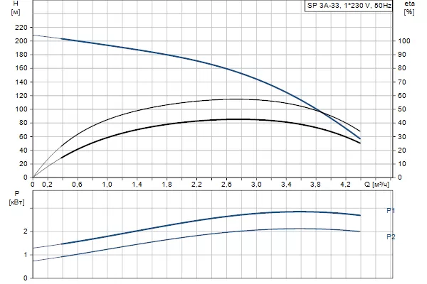 Графические характеристики Grundfos SP 3A-33
