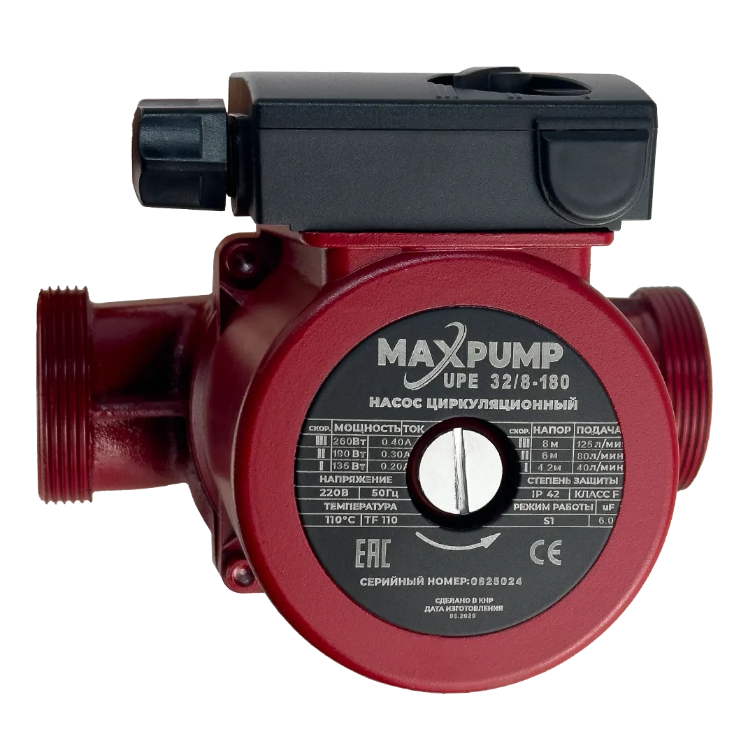 Циркуляционный насос MAXPUMP UPE 32/8-180 предназначен для обеспечения принудительной циркуляции теплоносителя в закрытых системах отопления.